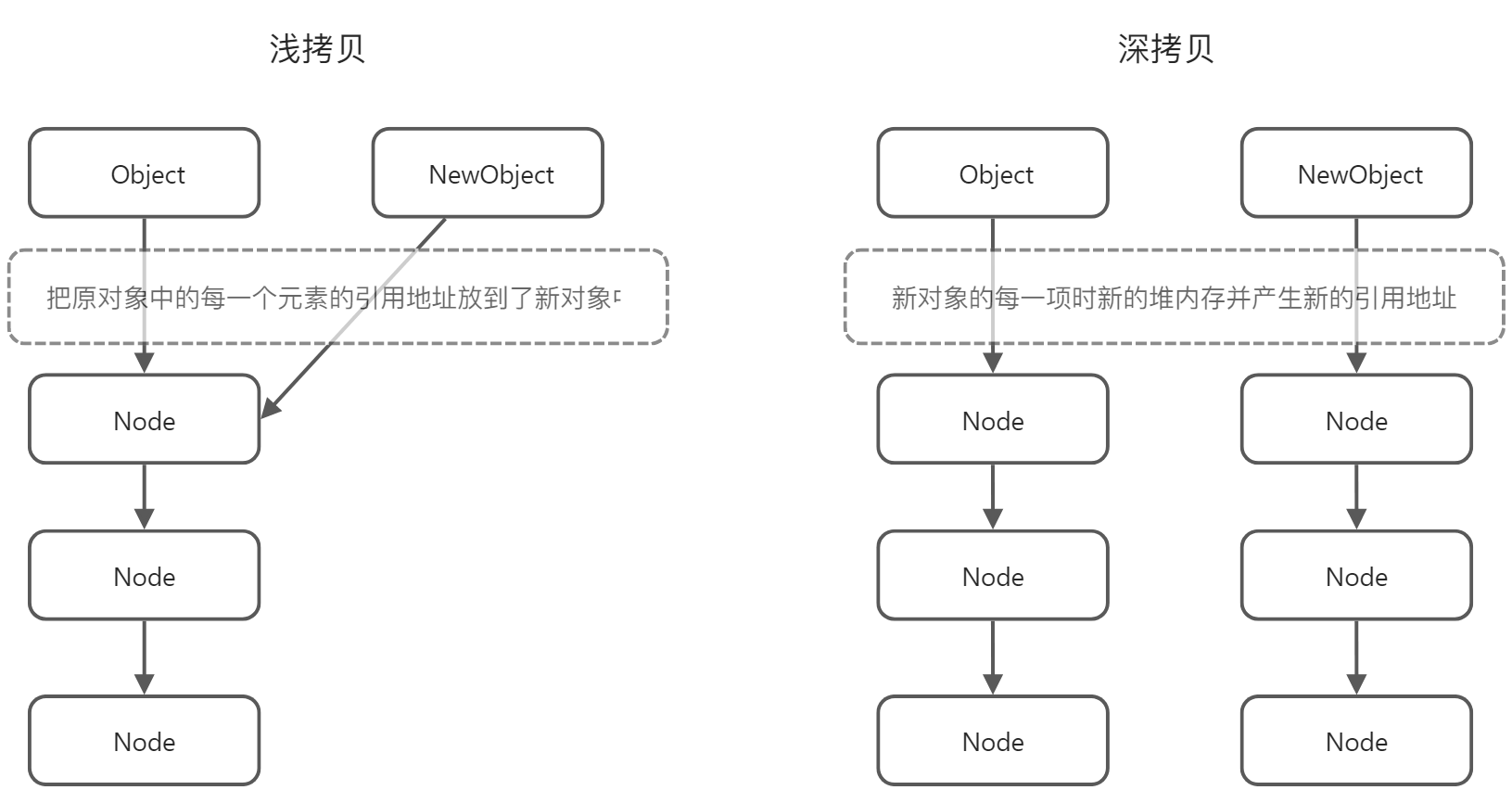 - 浅拷贝复制的是对象的引用,因此当属性为对象时,浅拷贝只复制一层,导致两个对象指向同一个地址。